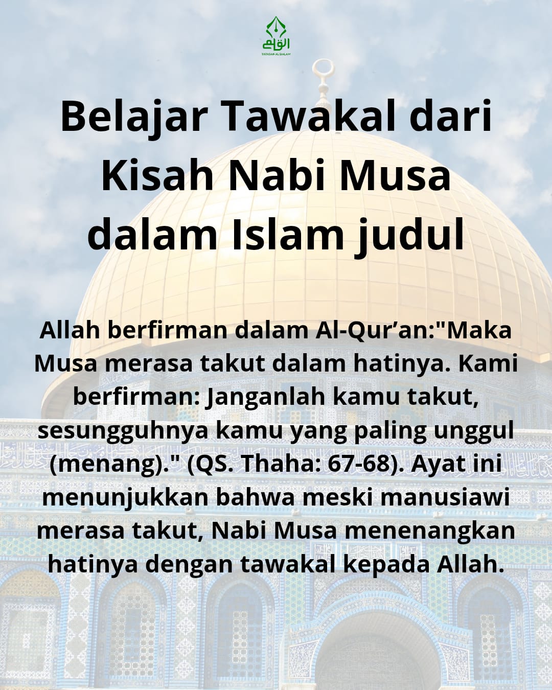 Tawakal adalah kunci kekuatan hati dan sumber ketenangan jiwa. Nabi Musa AS telah memberikan teladan bahwa dengan tawakal, manusia bisa menghadapi tantangan hidup sebesar apapun. Pertolongan Allah tidak pernah terlambat, asalkan kita benar-benar bersandar kepada-Nya.