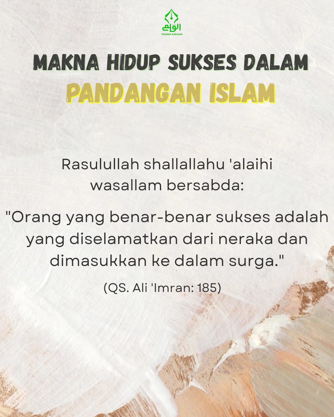 Dalam Al-Qur’an, Allah Subhanahu wa Ta’ala menyebutkan ciri-ciri orang sukses: “Sungguh beruntung orang-orang yang beriman.” (QS. Al-Mu’minun: 1). Sukses dalam Islam adalah ketika seseorang beriman kepada Allah dan Rasul-Nya, menjalankan perintah agama, menjauhi larangan-Nya, menjadikan akhirat sebagai tujuan utama.