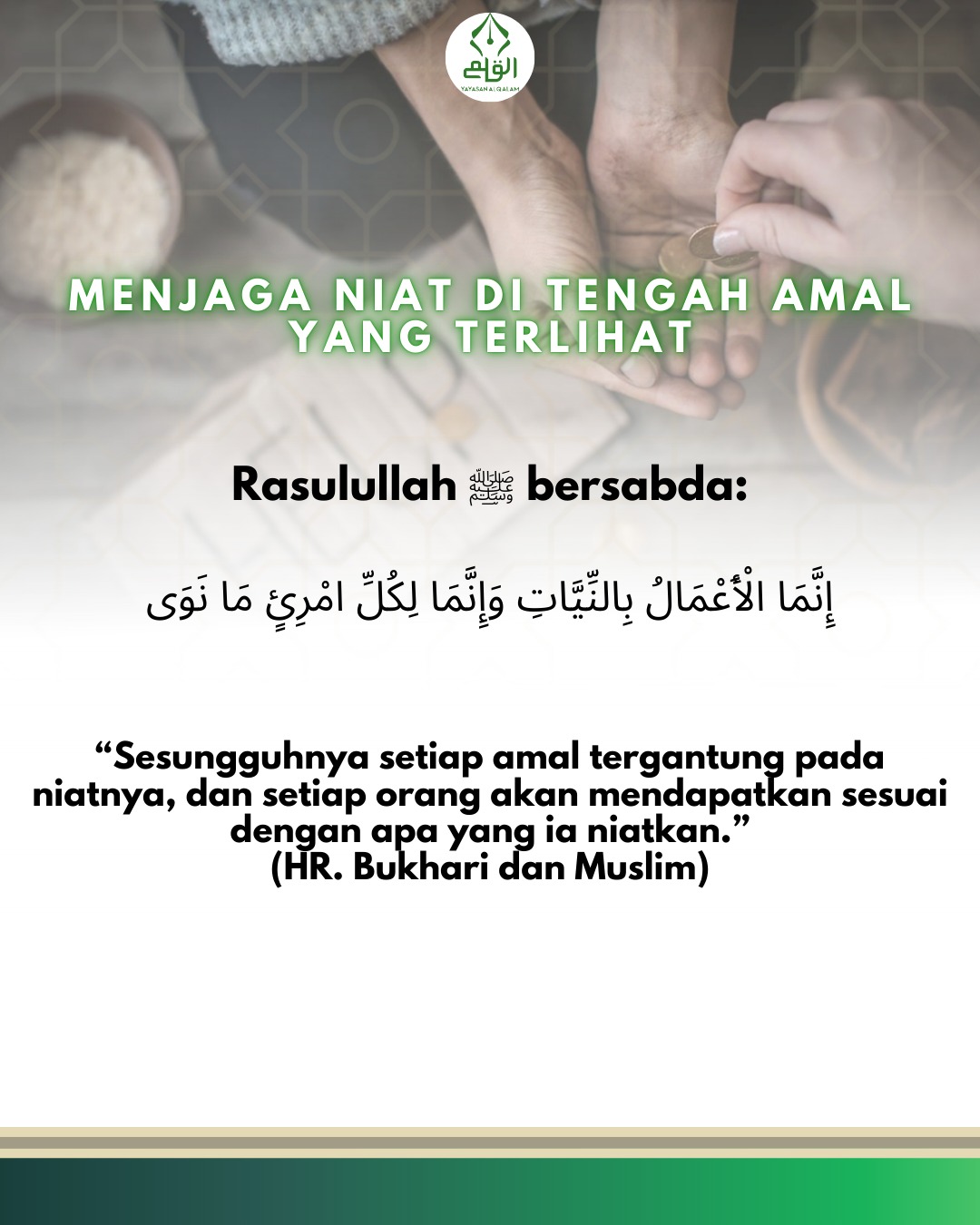Niat adalah fondasi dari setiap perbuatan. Ia tidak terlihat oleh manusia, tetapi sangat jelas di hadapan Allah. Amal yang tampak besar di mata manusia bisa menjadi kecil jika niatnya salah. Sebaliknya, amal yang terlihat sederhana bisa bernilai sangat besar jika dilakukan dengan hati yang ikhlas.