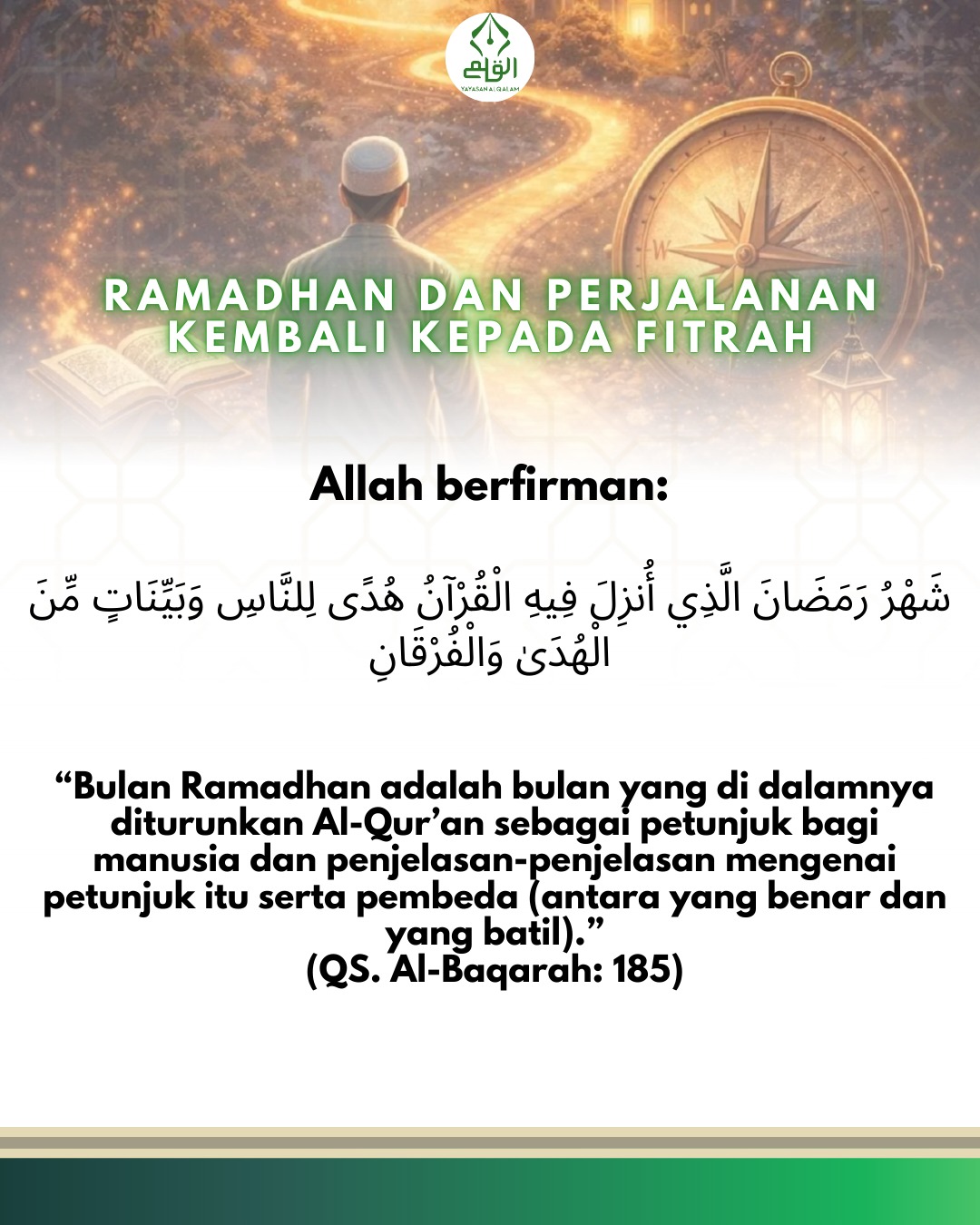 Ramadhan adalah perjalanan kembali kepada fitrah. Ia membersihkan hati, menata ulang niat, dan menguatkan kembali hubungan dengan Allah. Ia mengingatkan bahwa kebahagiaan sejati bukan terletak pada banyaknya harta, tetapi pada tenangnya jiwa.
