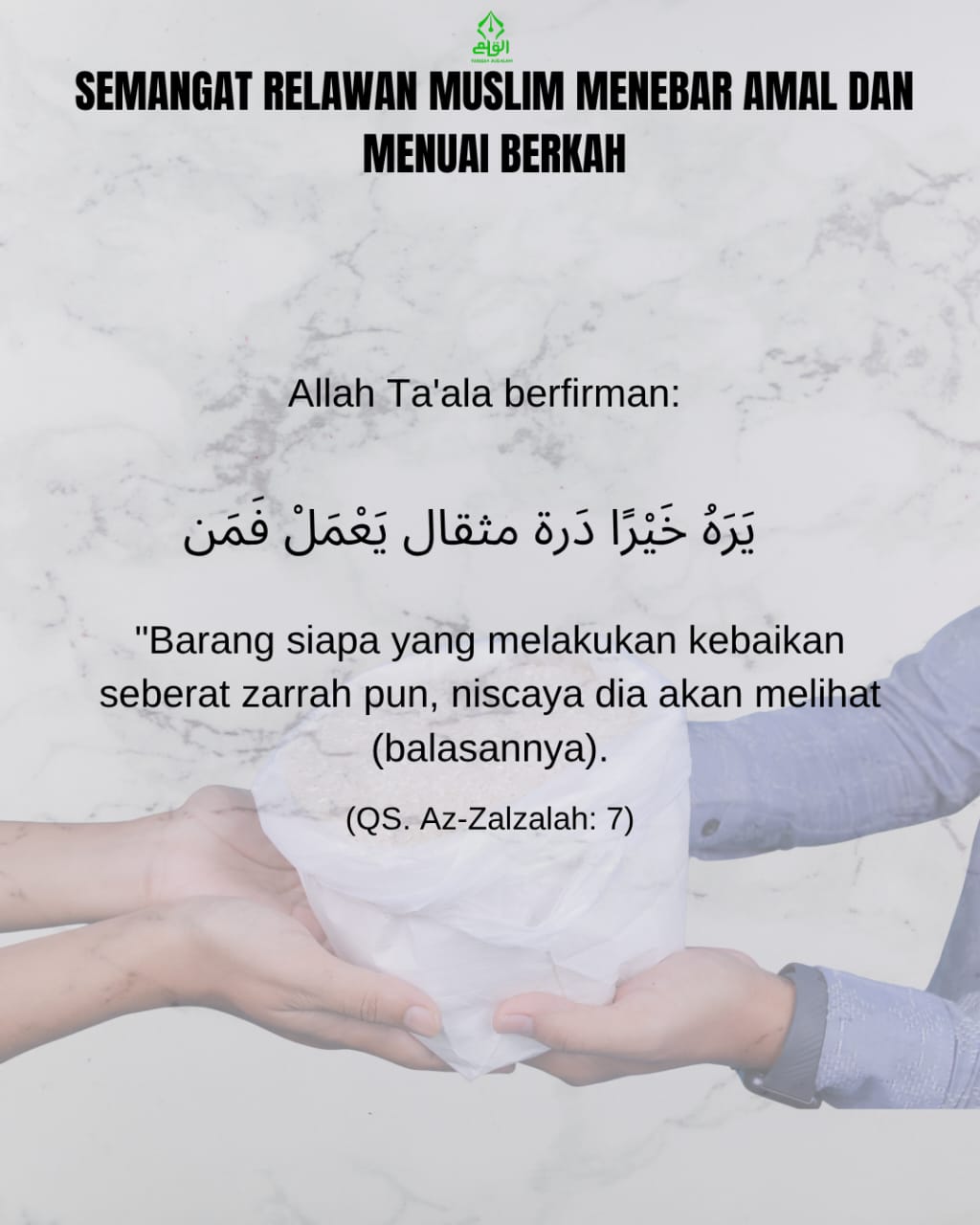 “Barang siapa yang melakukan kebaikan seberat zarrah pun, niscaya dia akan melihat (balasannya).”