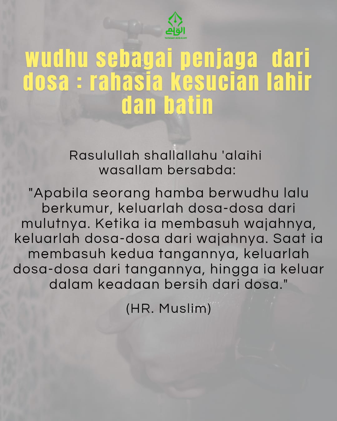 Wudhu bukan sekadar syarat ibadah, tapi juga penjaga diri dari dosa dan kotoran hati. Dengan menjaga wudhu, seorang muslim akan lebih mudah mengendalikan diri, lebih dekat dengan Allah, dan hidupnya akan penuh keberkahan. Mari kita jadikan wudhu bukan hanya rutinitas, tetapi gaya hidup yang menyucikan lahir dan batin.